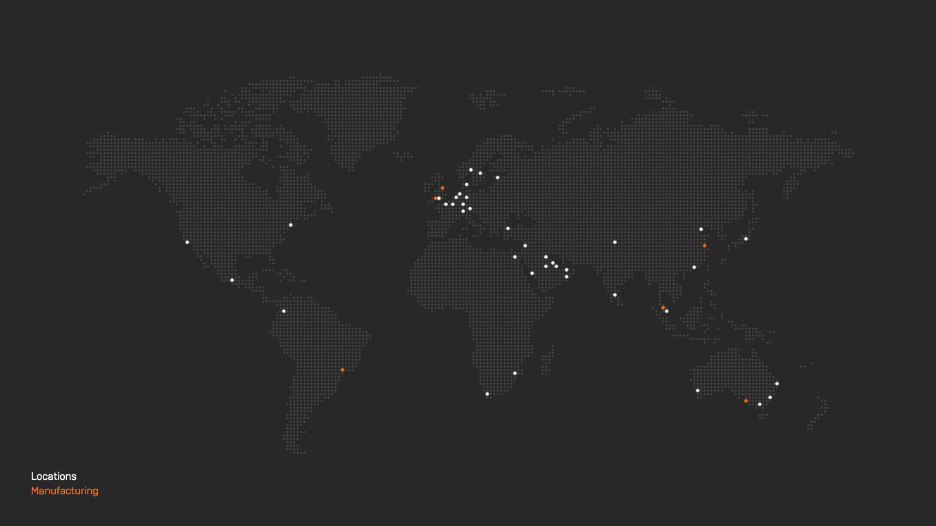 Our European manufacturing capability is complemented Internationally with our manufacturing partners based in Sao Paulo, Toronto, Shanghai, Adelaide with plans in place to extend this network through 2013 and beyond.
